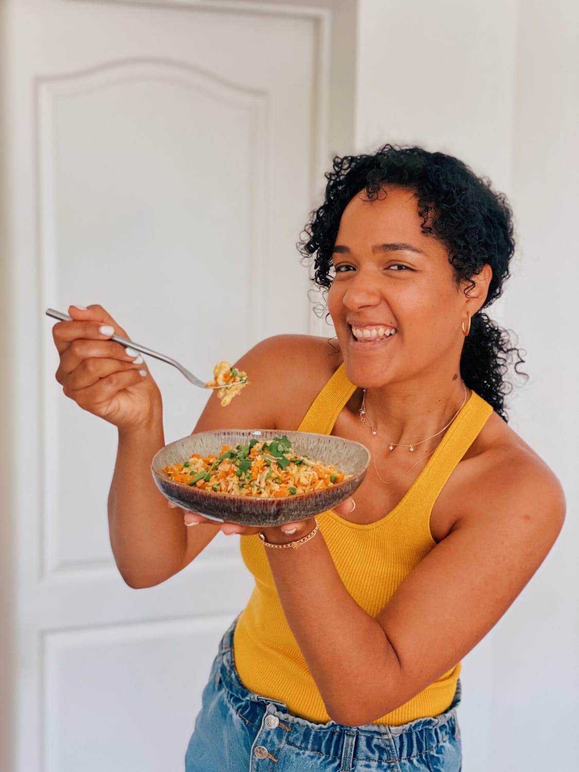 Voici LA recette que je fais le plus souvent dans ma vie ! Il n’existe pas une semaine sans que l’on se régale d’une assiette de riz frit à la maison avec Gemma. C’est un repas EXPRESS et complet qui me permet d’intégrer du légume très facilement et sans aucune bouderie à la clé ahah ! Cette recette est d’ailleurs disponible dans notre ebook d’été mais moi je la réalise chaque semaine et ce, peu importe la saison !